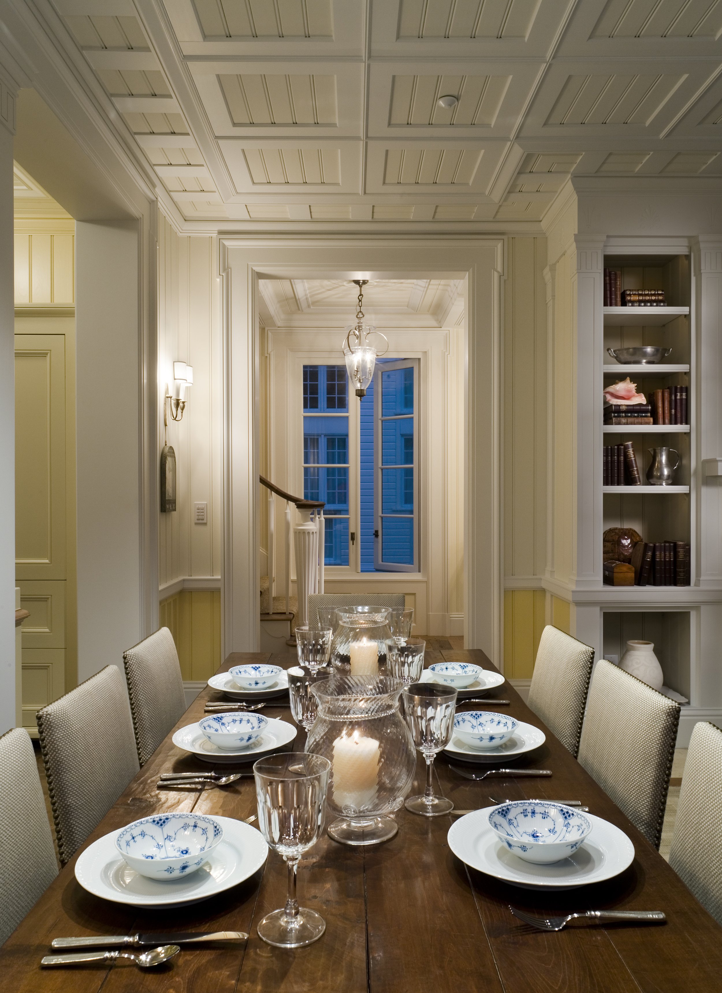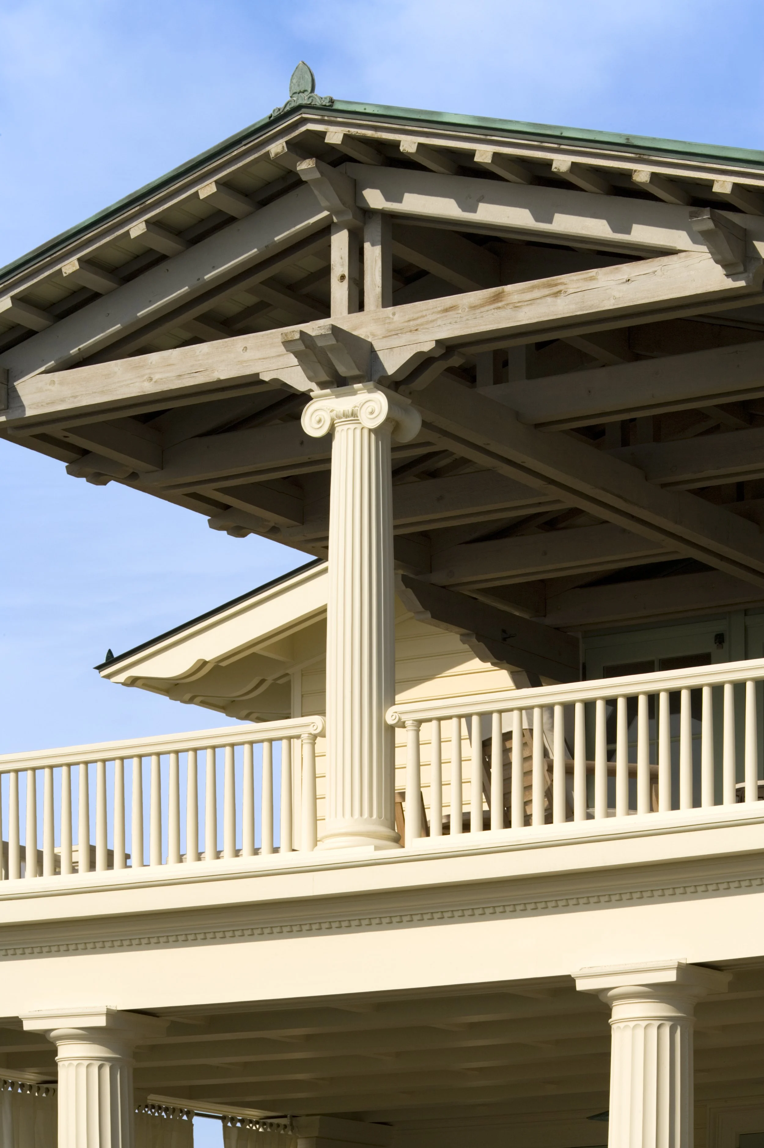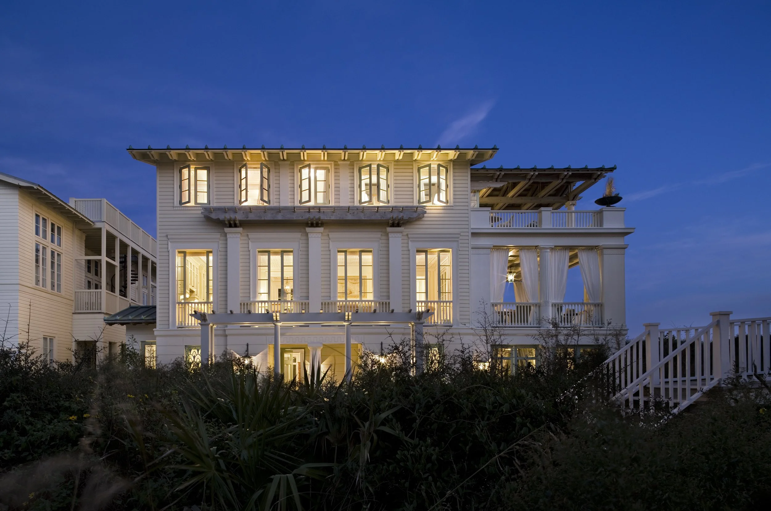 This 2,700-square-foot oceanfront house, balancing vernacular charm and high-style Classicism, establishes its own identity while adhering to the town of Seaside's strict design guidelines. The compact plan looks to the traditional urban townhouse model but employs a side entry through the garden. Children's bedrooms are located at the ground level with a screened porch facing the dune; the great room on the piano nobile above opens to another porch overlooking the ocean. The master bedroom suite, with sweeping vistas of both the town and the ocean, occupies the third level, its porch displaying the single Ionic column that gives the house its iconic presence and affords clear diagonal views along the surf. Combining a casual beach vibe with imaginative details inspired by Swedish Classicism, this award-winning house earned high praise from Andrés Duany and Elizabeth Plater-Zyberk—the architect-planners of the groundbreaking New Urbanist community in which it stands—and made the cover of Architectural Digest soon after its completion.